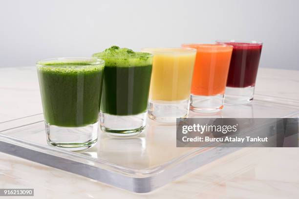 Fresh squeezed juice combinations. Pulp is dehydrated, blended to a powder and add back in for maximum nutritional value…